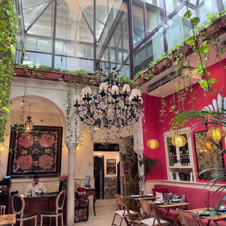 Situado pleno corazón del barrio de Santa Cruz y ubícado en una casa palacio del siglo XVIII se distingue por una variada cocina con platos de la cocina mediterranea, tapas, pescados de temporada, carnes al grill, vegetarianos, etc